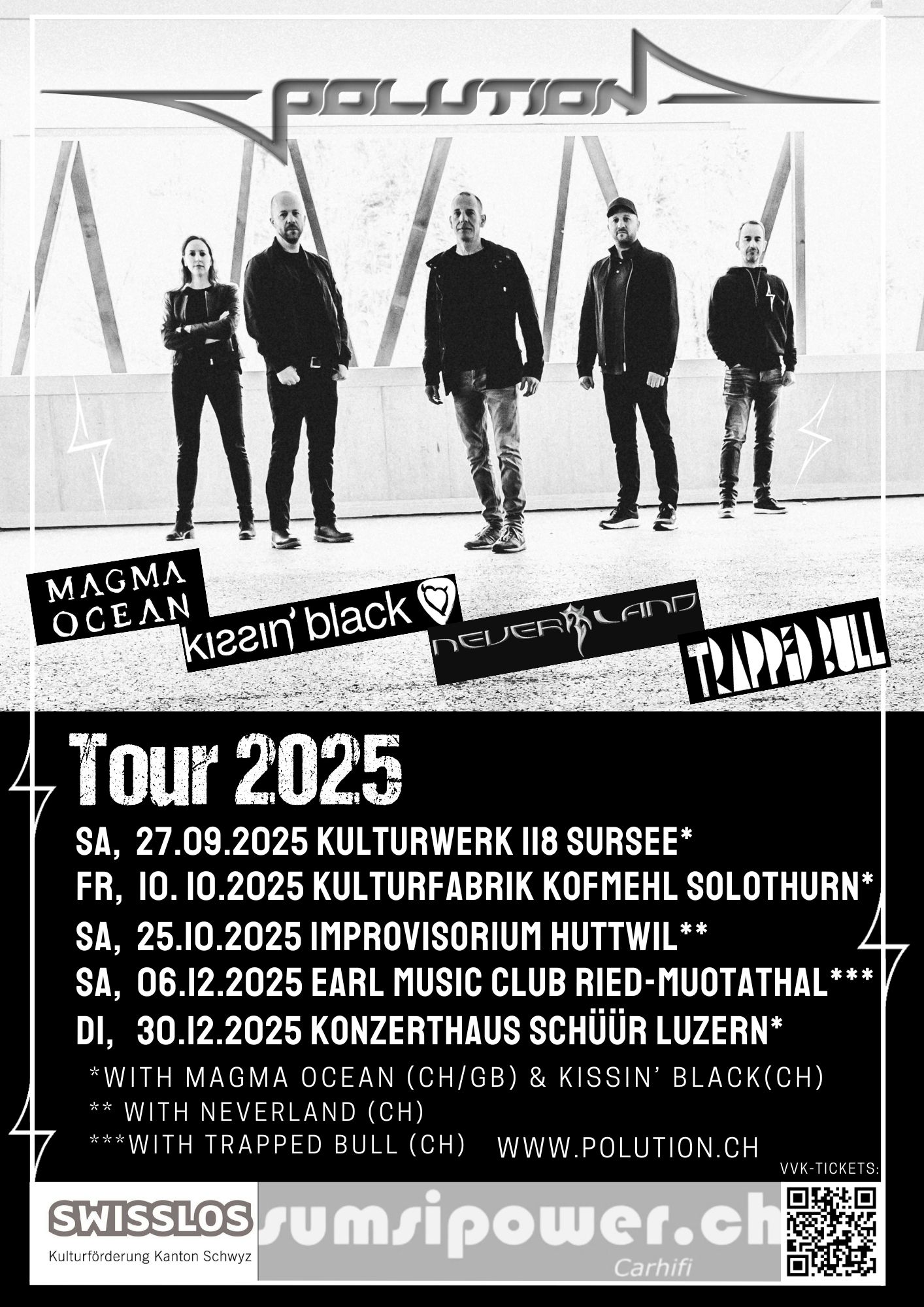 Die Polution-Herbst-Tour geht weiter und es wird LAAAUT! 🎸Mit Magma Ocean, Kissin‘ Black, Neverland und Trapped Bull rocken wir quer durch die Club-Bühnen der Schweiz…Sichere DIR jetzt deine Tickets für dich & deine Freunde und sei live mit dabei – wir freuen uns! Be there or be square….🤘